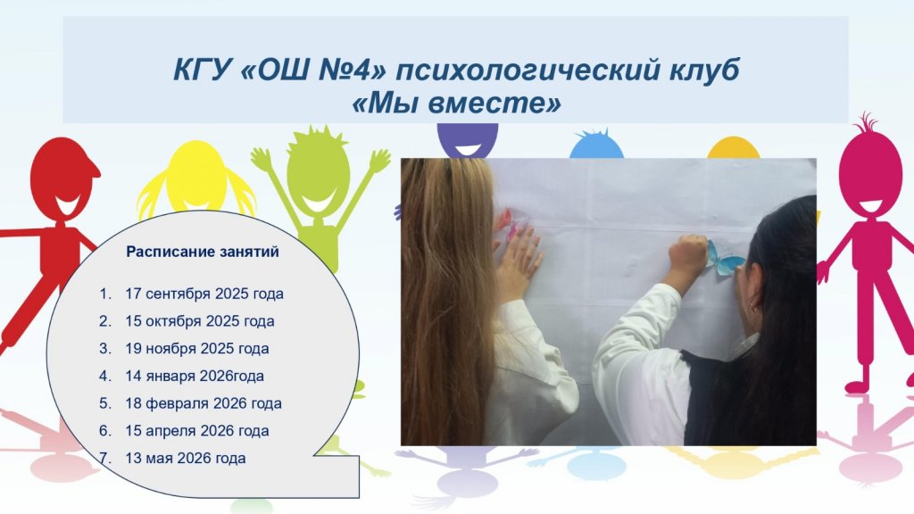 2025 жылғы 17 қыркүйекте "Біз біргеміз" психологиялық клубының жұмысы аясында "Өзімізбен үйлесімді"тақырыбында психологиялық сабақ өтті. Кездесу өзін-өзі тануға, жасөспірімдер...